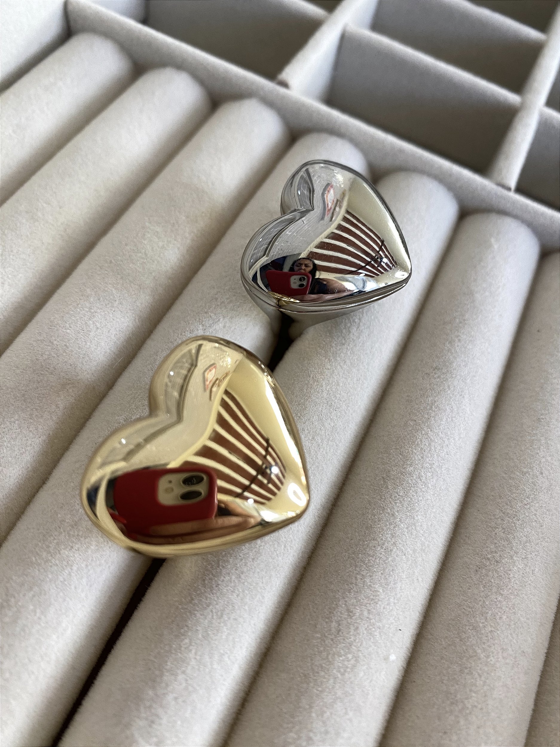 Anel Coração em metal zamac em banho dourado ou prateado, com banho de verniz italiano. Todos em tamanho 18cm.