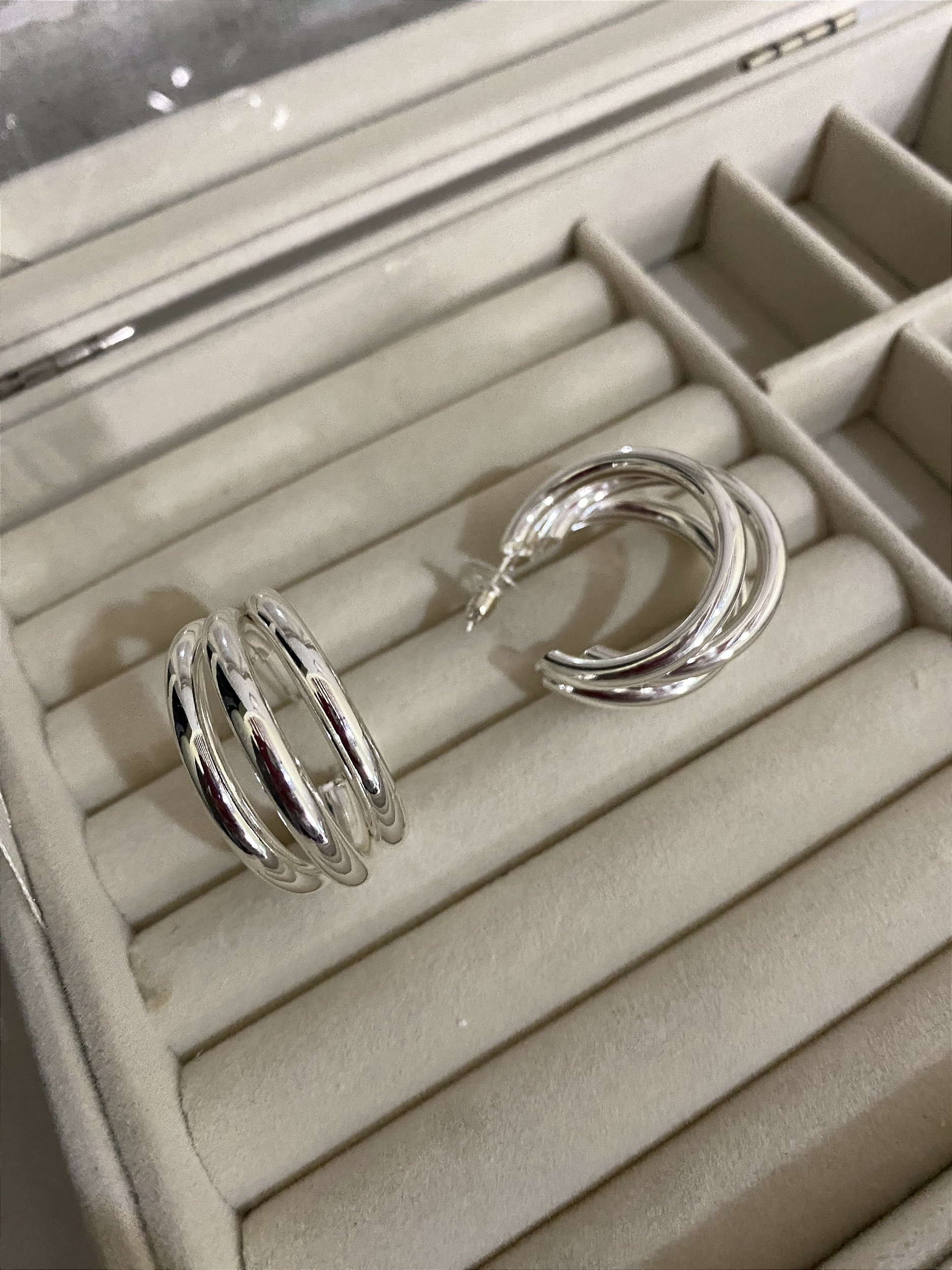 Brinco Ana, semi argola em banho prateado.