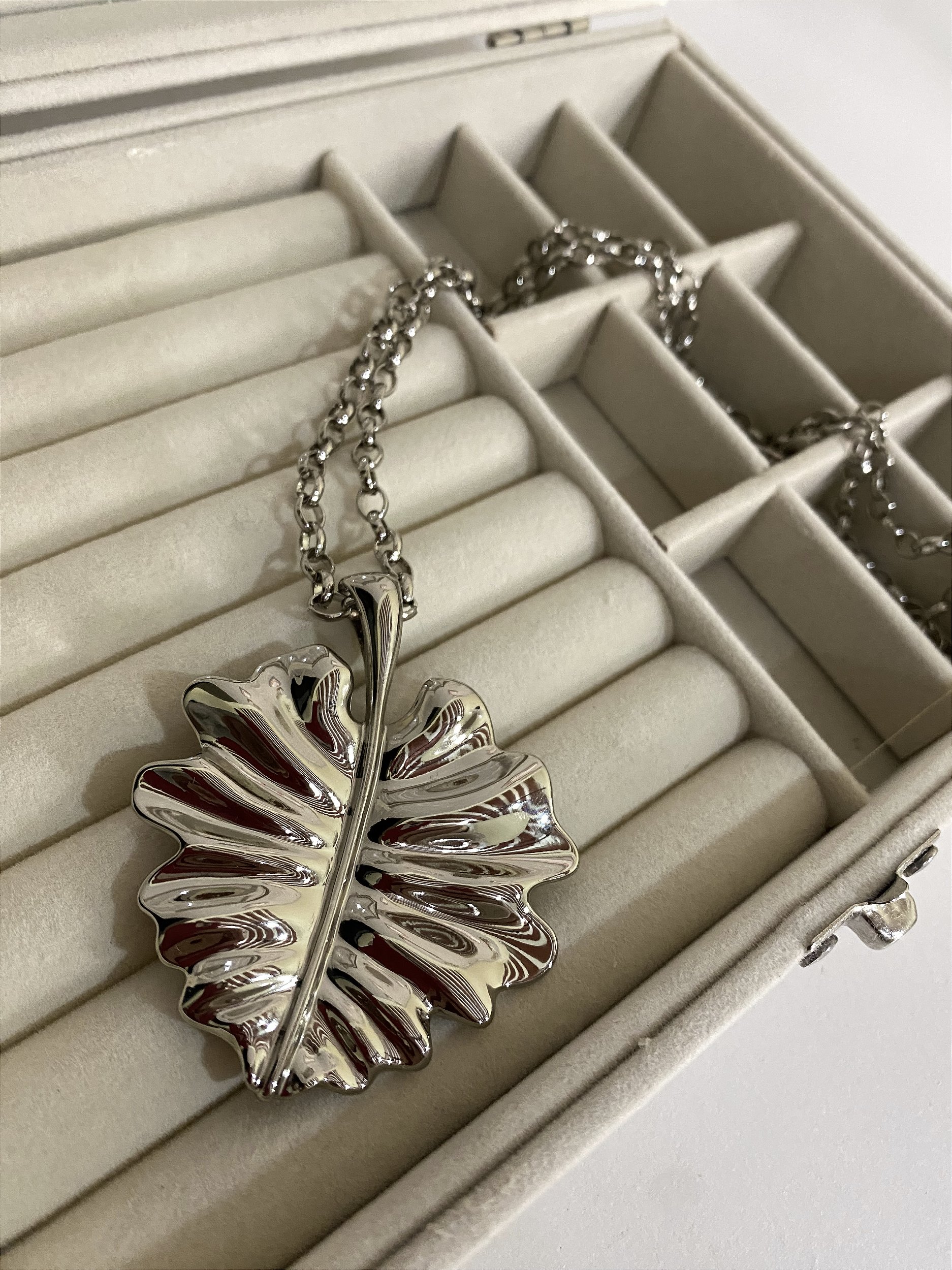 Cordão Folhagem em metal zamac, com banho dourado ou prateado, com banho de verniz italiano.